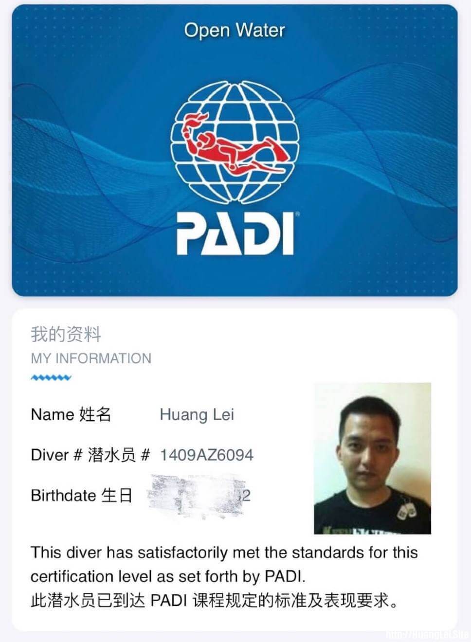 PADI OW Diver :1409AZ6094 发表于 2014-08-26 分类于 爱好 证书日期:2014-08-26 教练:Zhi Xiong Cheng(Padi编号:306572) -------------本文结束 感谢阅读------------- 本文作者: HuangLei 本文链接: https://maxlay.github.io/2014/08/26/padi-ow/ 版权声明: 本博客所有文章除特别声明外,均采用 BY-NC-SA 许可协议。转载请注明出处!
