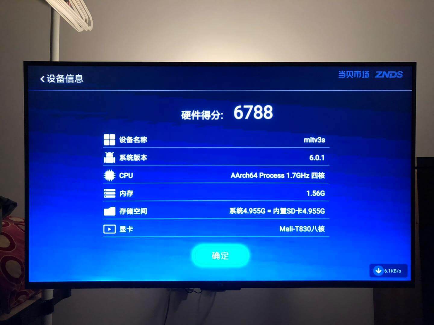 盒子今天收到了,装了当贝市场,分数是小米电视3S的一倍,废话不说,上图。 另外,惊喜的是,M8SproL可以跟小米电视3S很好的配合解析和色彩,达到4K60hz,color444,8bit。