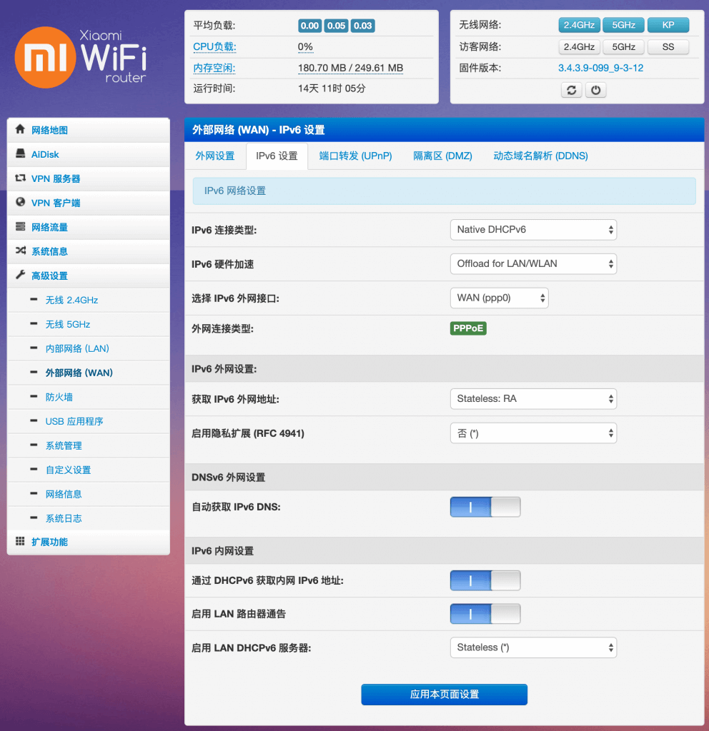 浙江移动宽带的ipv6设置 发表于 2019-04-17 分类于 爱好 -------------本文结束 感谢阅读------------- 本文作者: HuangLei 本文链接: https://maxlay.github.io/2019/04/17/浙江移动宽带的ipv6设置-trashed/ 版权声明: 本博客所有文章除特别声明外,均采用 BY-NC-SA 许可协议。转载请注明出处!