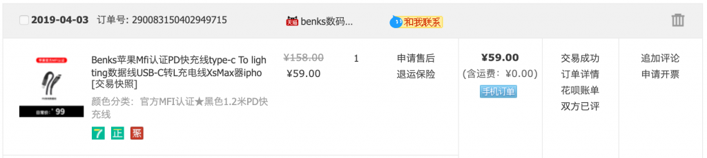 我4月3日买过Benks的线,但无论是质量还是颜值,我都没有要推荐它的意思。