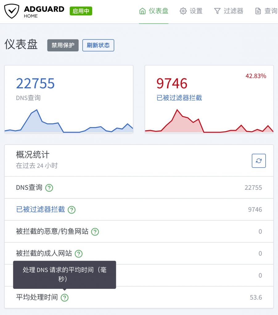 按照这样的设置,路由器会同时查询内网的三台AdGuard Home,大大提高稳定性,三台垮一台甚至两台都不影响上网,而且私人DNS服务都在内网,ping值都小于1毫秒,独立硬件,解析速度也有保障,算是榨干所有路由硬件性能了。
