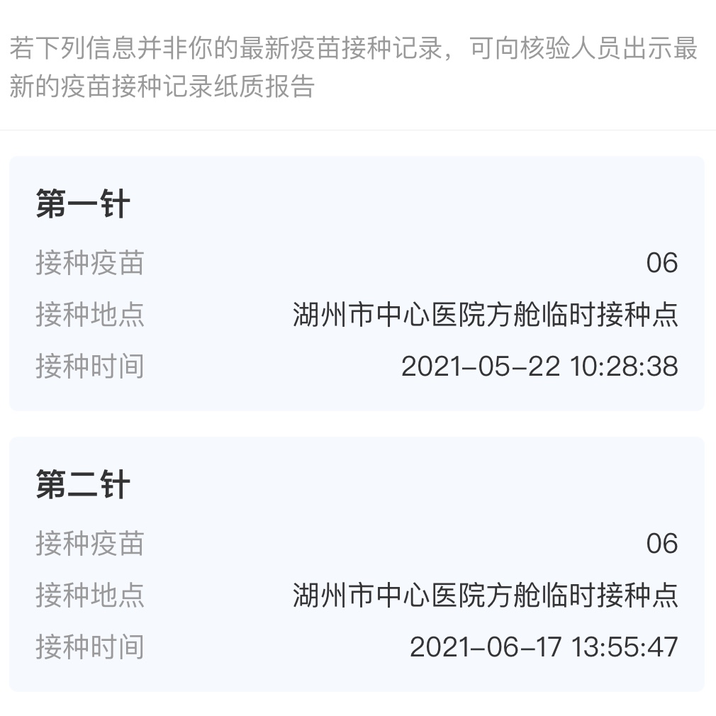 新冠疫苗接种完成 发表于 2021-07-04 分类于 健康 第二针北京生物疫苗接种超过两周时间,这几天的抗体水平是最高峰值。 -------------本文结束 感谢阅读------------- 本文作者: HuangLei 本文链接: https://maxlay.github.io/2021/07/04/新冠疫苗/ 版权声明: 本博客所有文章除特别声明外,均采用 BY-NC-SA 许可协议。转载请注明出处!