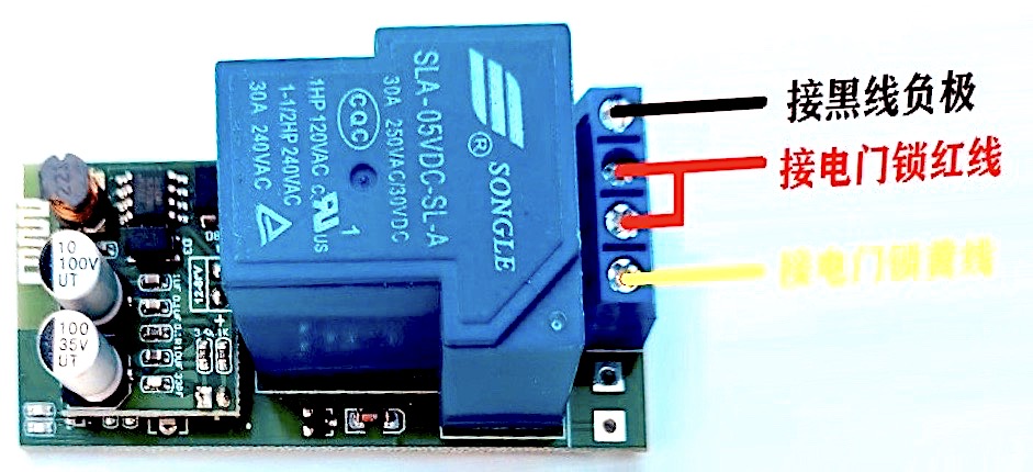 找到车子机械锁后面的红黄电线,割破线皮(不剪断),按图接线到芯片上,另外找一根常通的零线(黑色线)割破线皮(不剪断),同样按图接到芯片上,芯片会立马启动。
