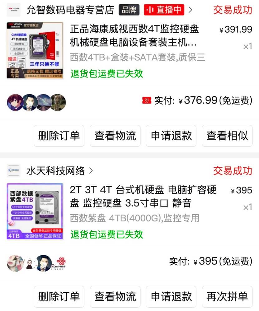 2021年 在PDD买了2个4T共8T的机械硬盘(一共花了771.99元)