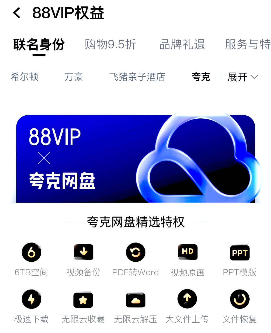 如果是“88VIP”,你就可以领取6T容量大夸克会员权益