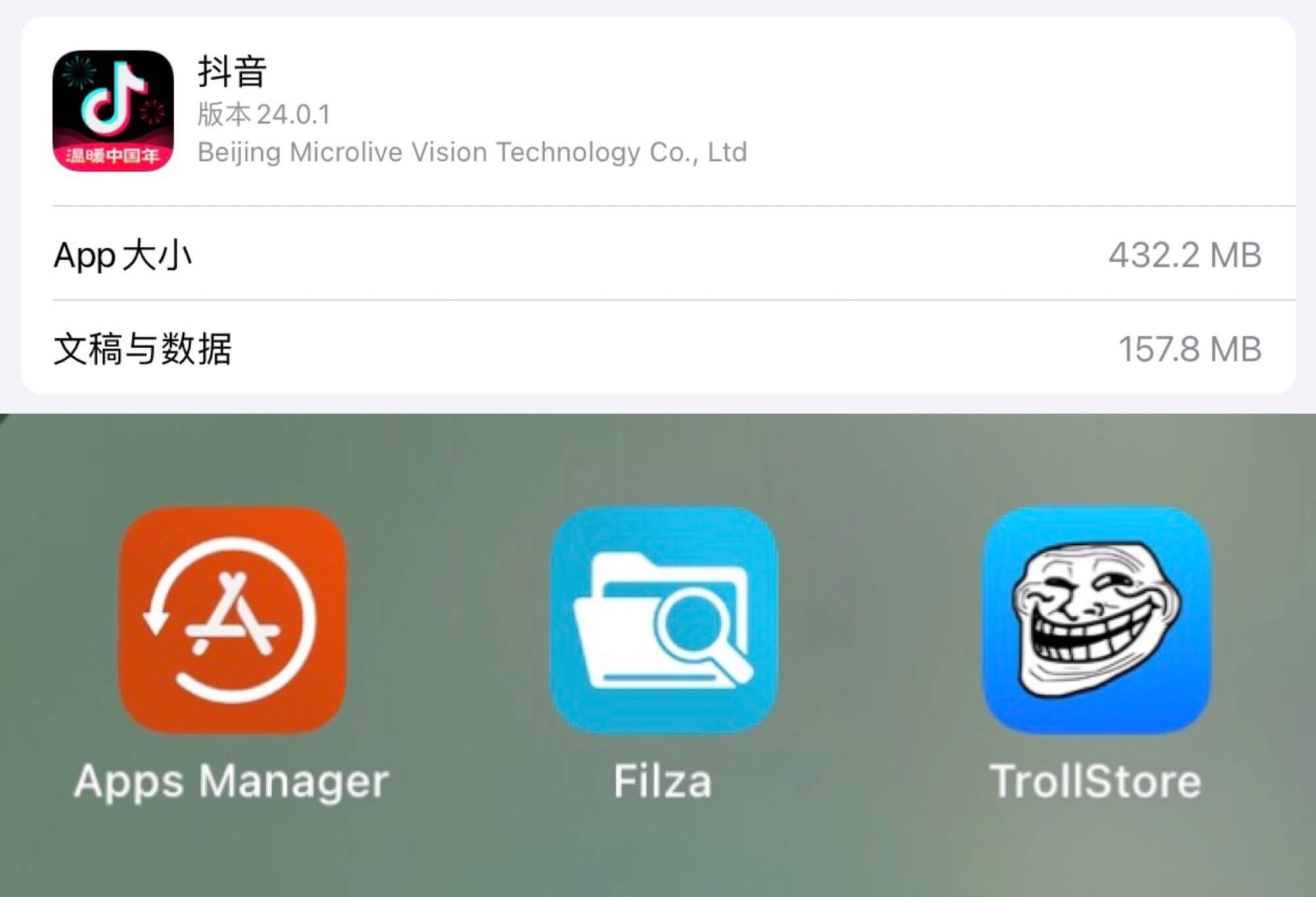 解决的思路简单来说就是用TrollStore来安装Filza,然后用Filza限制(App 管理器里找到的)“抖音”下面两个目录地址的写入和执行权限,限制权限前先删除这两个目录里的文档,不允许抖音缓存。问题就迎刃而解了。